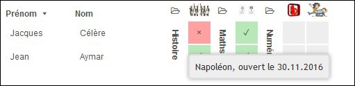 Une fenêtre s'affiche avec la liste des élèves de la classe et, pour chacun d'eux :