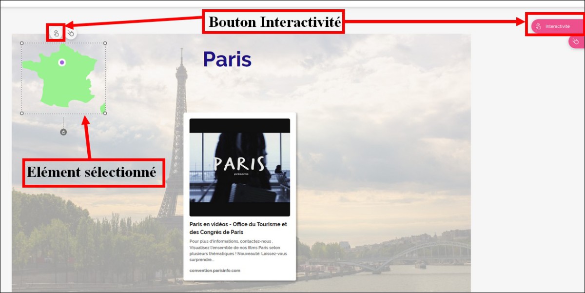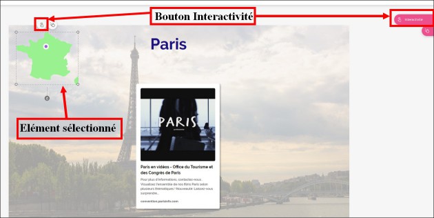 sur le bouton Interactivité apparu au-dessus de l'élément sélectionné (image Interactivité2 ci-dessous).